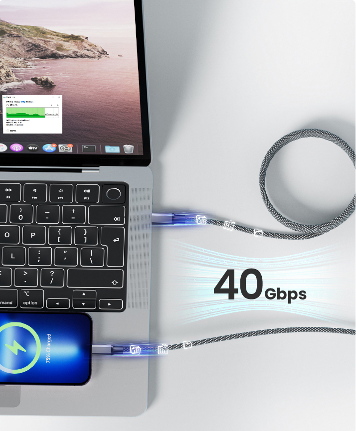 Enjoy swift and efficient data transfer for all your files, videos, and multimedia content, with a blazing transmission speed of up to 40 Gbps.